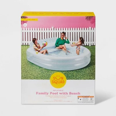 The Sun Squad™ Blue Family Pool has space for the whole family to have fun this season. With space to fit 4 people comfortably, you can lean against the cushioned backrests and stretch out. This inflatable pool has a wide bench, perfect for sitting and enjoying a cooldown. There are also 2 drink holders to keep your refreshments close by. Set up is quick and easy: simply inflate the Blue Family Pool, fill it with water and invite the family to enjoy splashing and carefree relaxation.