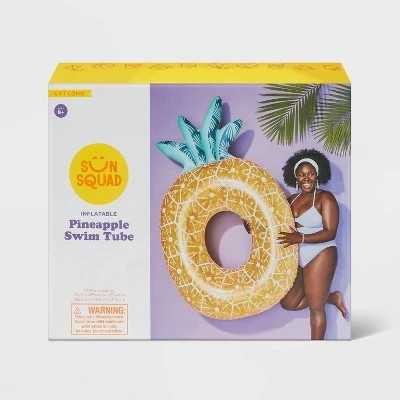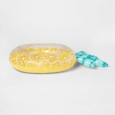 Enjoy your day on the water and let your troubles float away with this Pineapple Float from Sun Squad™. Quick and easy to inflate, this PVC constructed inflatable pool tube is shaped like a pineapple for a fun, tropical look. Just fill this pineapple pool float up with air, and it will become your favorite way to cool off at the beach or pool.