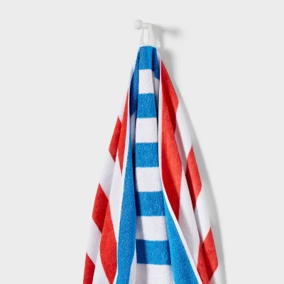 Bring some vibrance to your sunny activities with this XL Reversible Towel from Sun Squad™. Crafted from 100% terry cotton, this printed bath towel feels soft against your skin while allowing you to dry off quickly. Great for wrapping around your waist after a shower or a swim, it can also be used to spread over a chaise lounge or on the sand for soaking up some sun. Plus, a hanging loop makes it easy to hang from a hook. Showcasing red and white stripes on the front and red and blue stripes on the reverse, it brings eye-catching appeal to all of your sunny escapades.